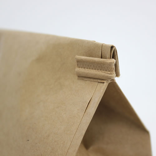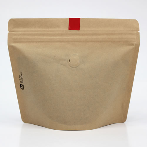 ガス抜きテープ付きの無地のガゼット袋に、お手軽プリントで作成したラベルを貼っています。