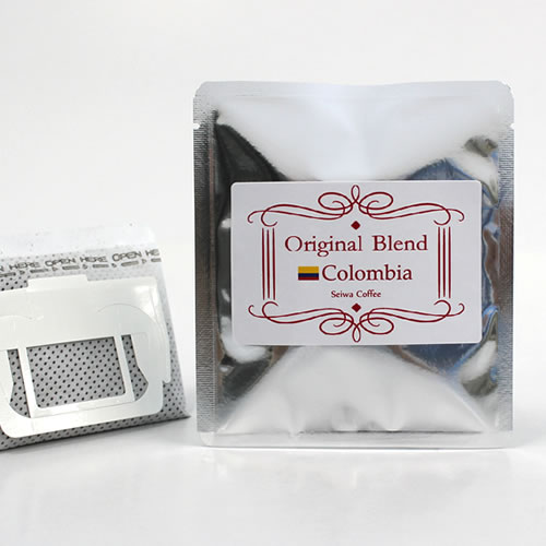 珈琲用ドリップバッグを三方袋に入れ、お手軽プリントで作成したラベルを貼っています。